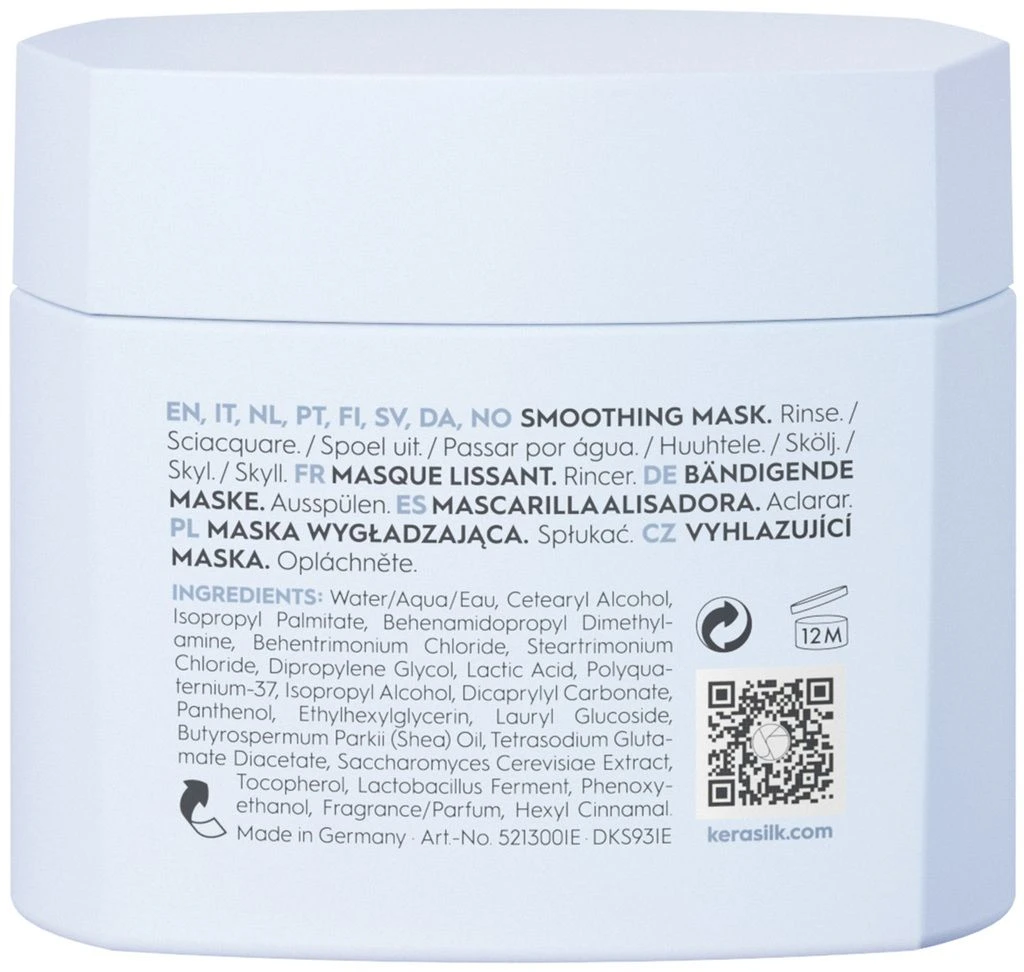 Le Masque Lissant de Kerasilk redonne le contrĂŽle aux cheveux rebelles, bouclĂ©s et difficiles Ă dompter. Le masque nourrissant en profondeur donne aux cheveux une souplesse perceptible et facilite le coiffage. Les cheveux sont dĂ©mĂȘlĂ©s et immĂ©diatement plus doux. GrĂące Ă la soie biomimĂ©tique et Ă l’huile de karitĂ©, la formule pĂ©nĂštre dans la structure du cheveu et lui confĂšre une brillance durable.