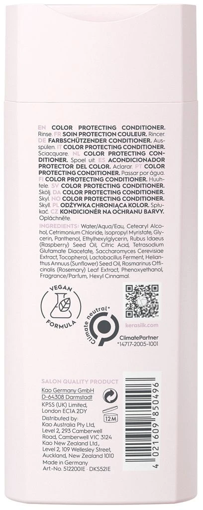 Le Soin Protection Couleur de Kerasilk pour cheveux colorĂ©s donne une sensation particulière aux cheveux : avec de la soie biomimĂ©tique et de l’huile de graines de framboise, les cheveux sont dĂ©mĂŞlĂ©s, plus faciles Ă coiffer et suffisamment hydratĂ©s. Une sensation de cheveux soignĂ©s s’installe, renforcĂ©e par une brillance de couleur intense. Le soin protège la couleur des cheveux de l’affadissement et redonne de l’Ă©clat aux cheveux ternes, sans Ă©clat et dessĂ©chĂ©s.