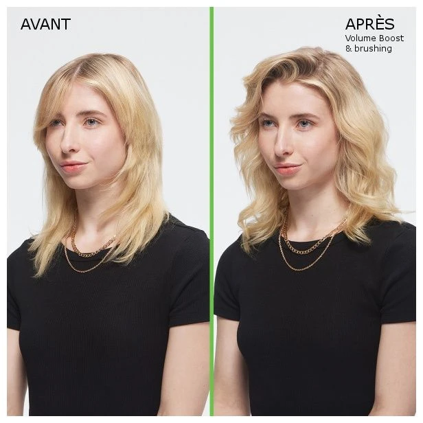 Vaporiser sur les racines des cheveux essorĂ©s et laisser sĂ©cher Ă l’air libre ou au sèche-cheveux avec une grosse brosse ronde. Pour encore plus de volume, appliquer le produit section par section dans les cheveux.