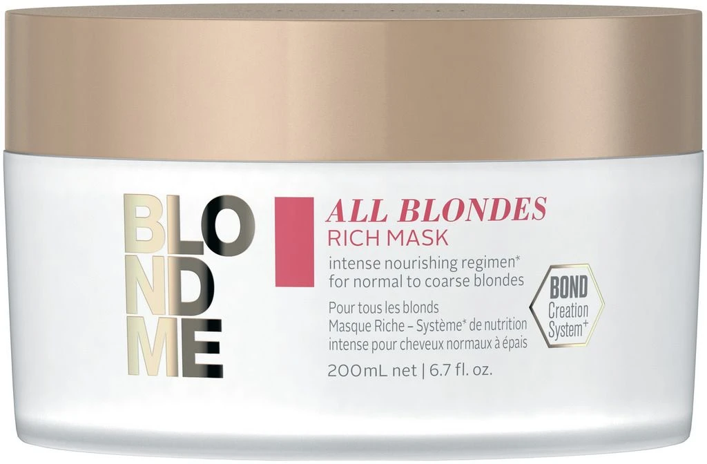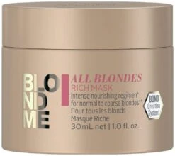 Le Masque Riche All Blondes de Schwarzkopf BlondMe est un soin spécialement conçu pour toutes les nuances de blonds des cheveux normaux à épais. Vous nourrissez ainsi votre balayage chaud ou froid ou vos tons ombrés de maniÚre optimale, et les régénérez à chaque utilisation.