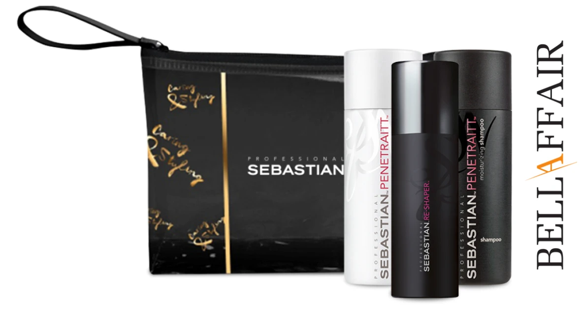 Le Set découverte Sebastian Penetraitt est idéal pour les cheveux abîmés. Les trois produits de soin en petit format sont livrés avec une trousse de toilette, ce qui rend le kit parfait pour les voyages.